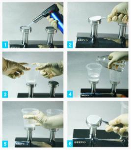 | 步骤1:滤头灭菌-Sterilize the filter head 步骤2:放置滤膜-Place membrane 步骤3:安装滤杯-Put on funnel 步骤4:过滤样品-Filter sample 步骤5:脱卸滤杯-Take off funnel 步骤6:转移滤膜-Transfer membrane |