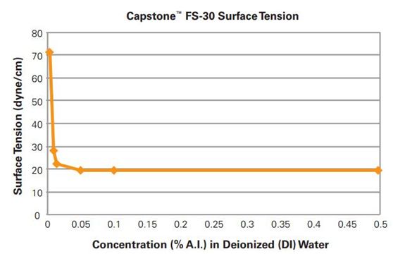 ● Capstone® FS-30是一种广普的水溶性含氟聚氧乙烯醚类非离子表面活性剂,可以在很低的剂量下提供高效的表面活性。