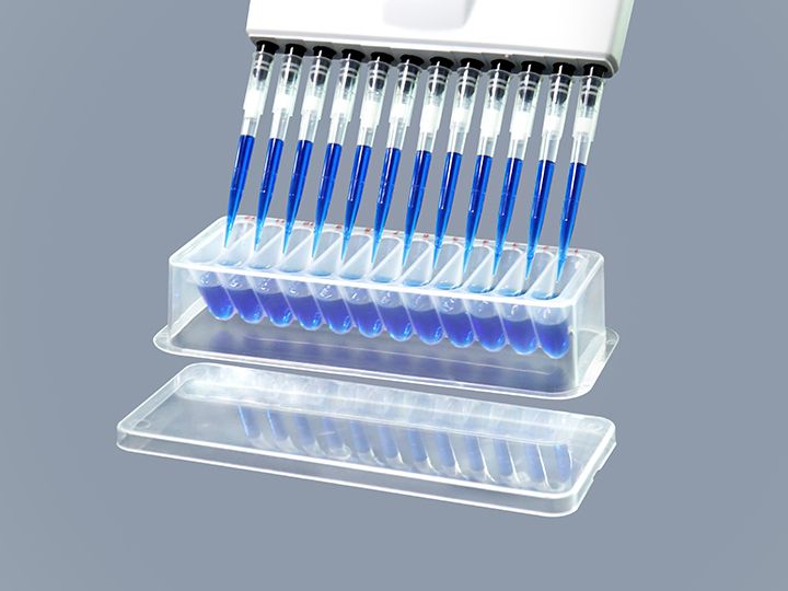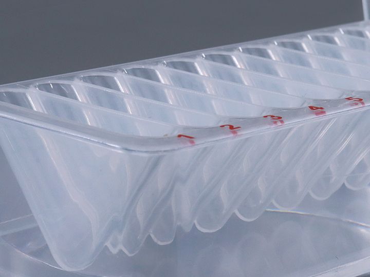 12道加样槽主要用于移取试剂的盛装。在移液、连续稀释等操作中,需要重复移取液体,尤其是使用多道移液器时,通过将液体盛放在加样槽以方便移液。洁特(BIOFIL)12道加样槽具有桌面平稳可立性,残余少等特性,方便用户使用多道移液器快速、连续移取操作。