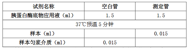 二、适用范围:本试剂盒可测各种动物血清(浆)、组织等样本中胰蛋白酶活性;