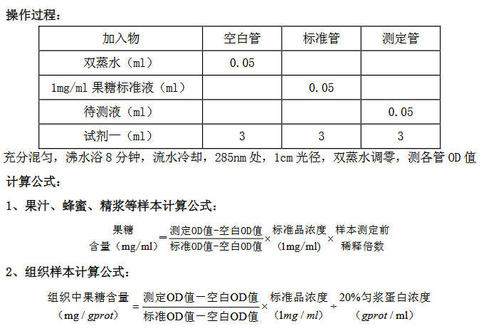 本试剂盒可测各种果汁、蜂蜜、精浆、组织等样本中果糖;
