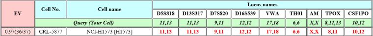 本细胞株通过STR (short tandem repeats)鉴定,具体结果如下: