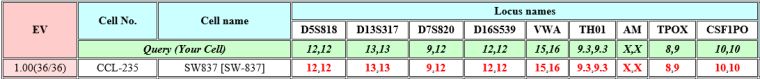 本细胞株通过STR (short tandem repeats)鉴定,具体结果如下: