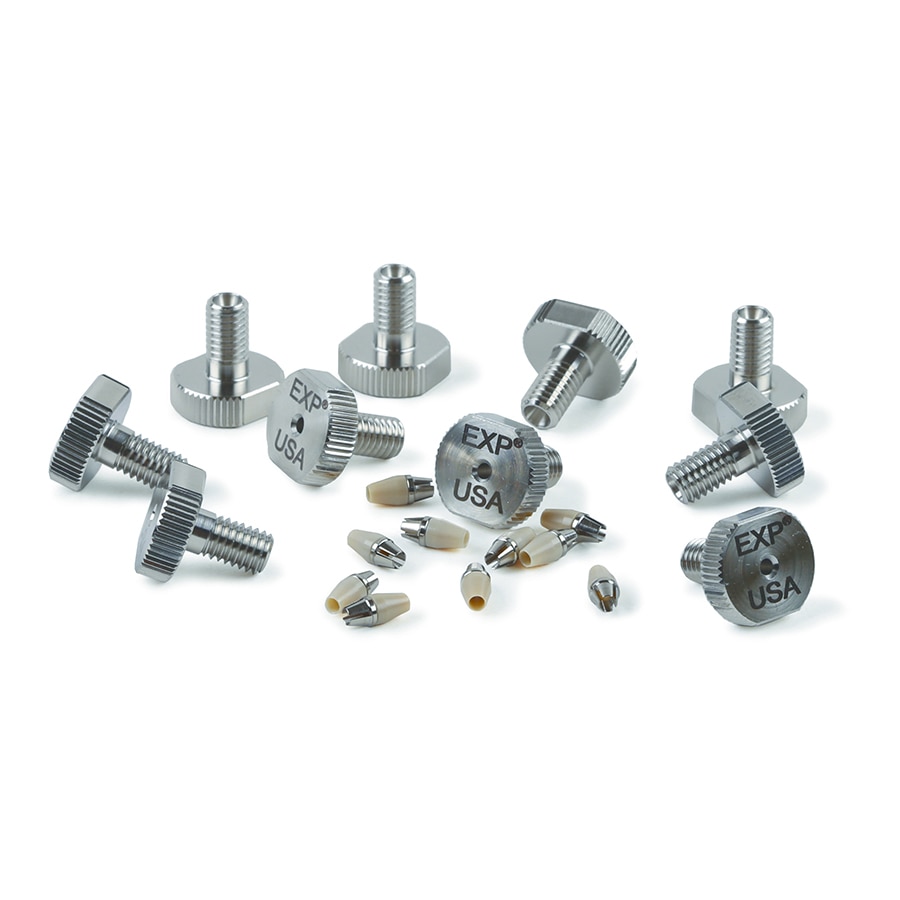 The patented hybrid EXP ferrule combines the durability of titanium with the sealing ability of PEEK for a swage that can be reused over and over again. And, when you choose the hand-tight fitting style, the special EXP nut offers an effortless seal up to 8700+ psi (600+ bar)—no tools needed! For a reliable 20,000+ psi (1400+ bar) UHPLC connection with either fitting style, simply wrench tighten an extra 1/4 to 1/2 turn.