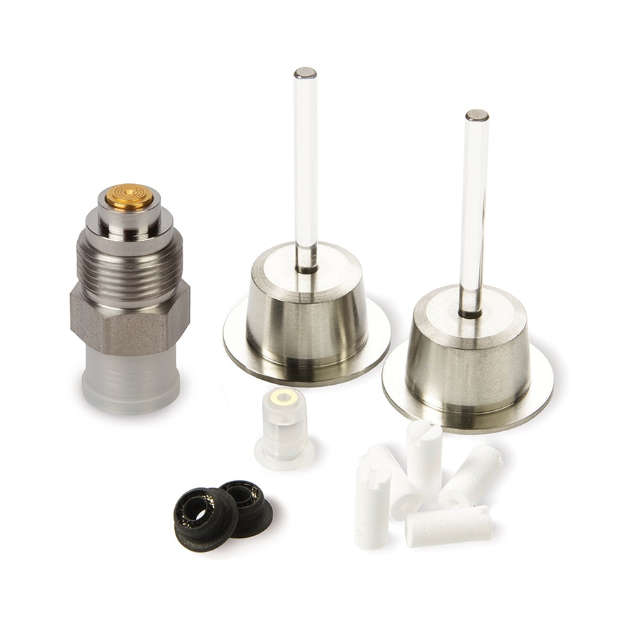 Sapphire plunger (2); piston seals (2); outlet ball check valve; active inlet cartridge; PTFE frits (5)