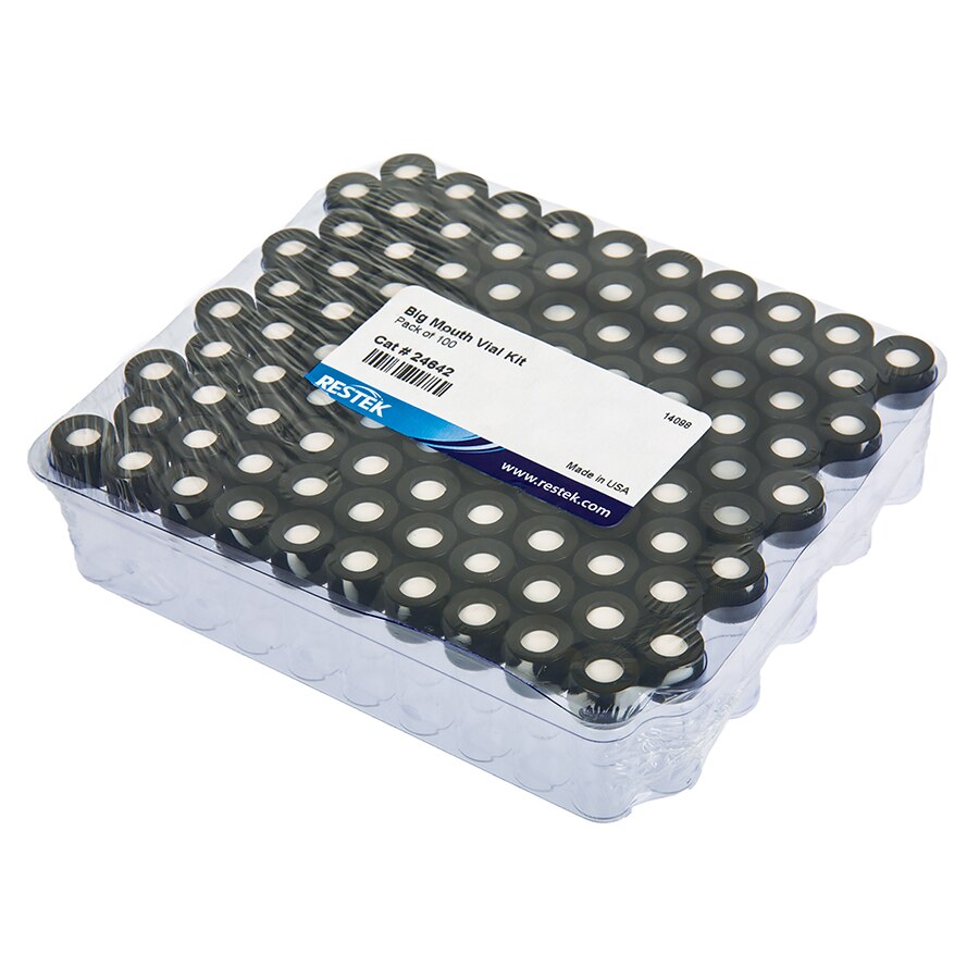 广口小瓶套装,红色PTFE/硅胶隔垫0.065英寸,透明,带黑色盖子,2.0 mL,预装配,100个/包