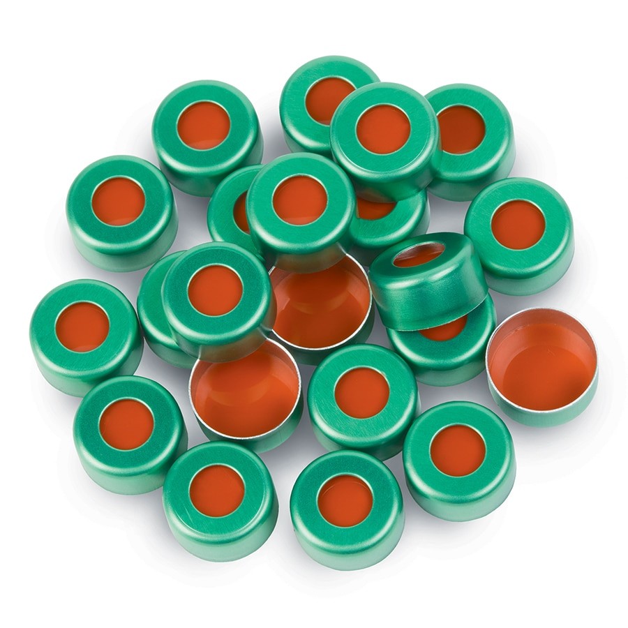 铝制压盖,盖和PTFE/红色橡胶隔垫,绿色,2.0 mL,11 mm,1000个/包 |