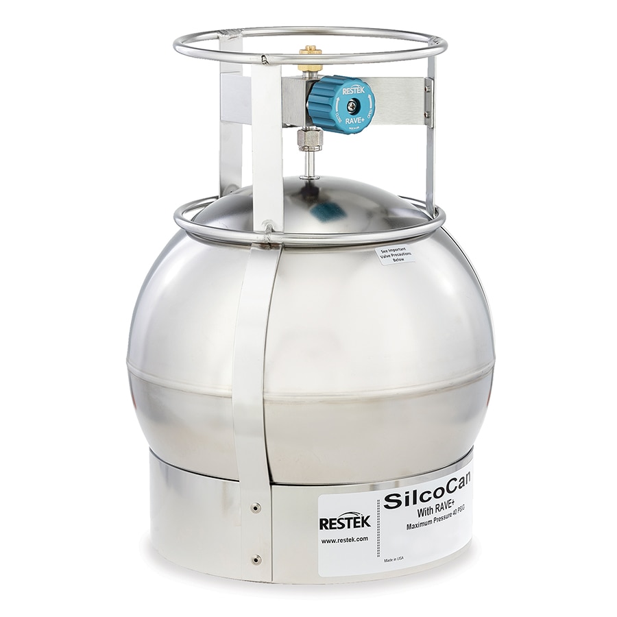 Whether you are sampling for TO-14A, TO-15, TO-15A, or reactive sulfur compounds, SilcoCan canisters are your best choice for inertness. In Tedlar bags, the stability of low-level (100 ppbv) sulfur volatile organic compounds (VOCs) is poor, even within 24 hours of sampling. Sulfur compounds react with the metal surface in electropolished canisters, so they are unsuitable for collecting and storing low-level sulfur VOCs. SilcoCan air sampling canisters, which feature a Siltek-treated surface, offer excellent storage stability for sulfur VOCs at very low levels (5–20 ppbv), under dry or humid conditions. The versatility of the SilcoCan canister makes it an excellent choice for collecting and storing TO-14A, TO-15, or TO-15A compounds.