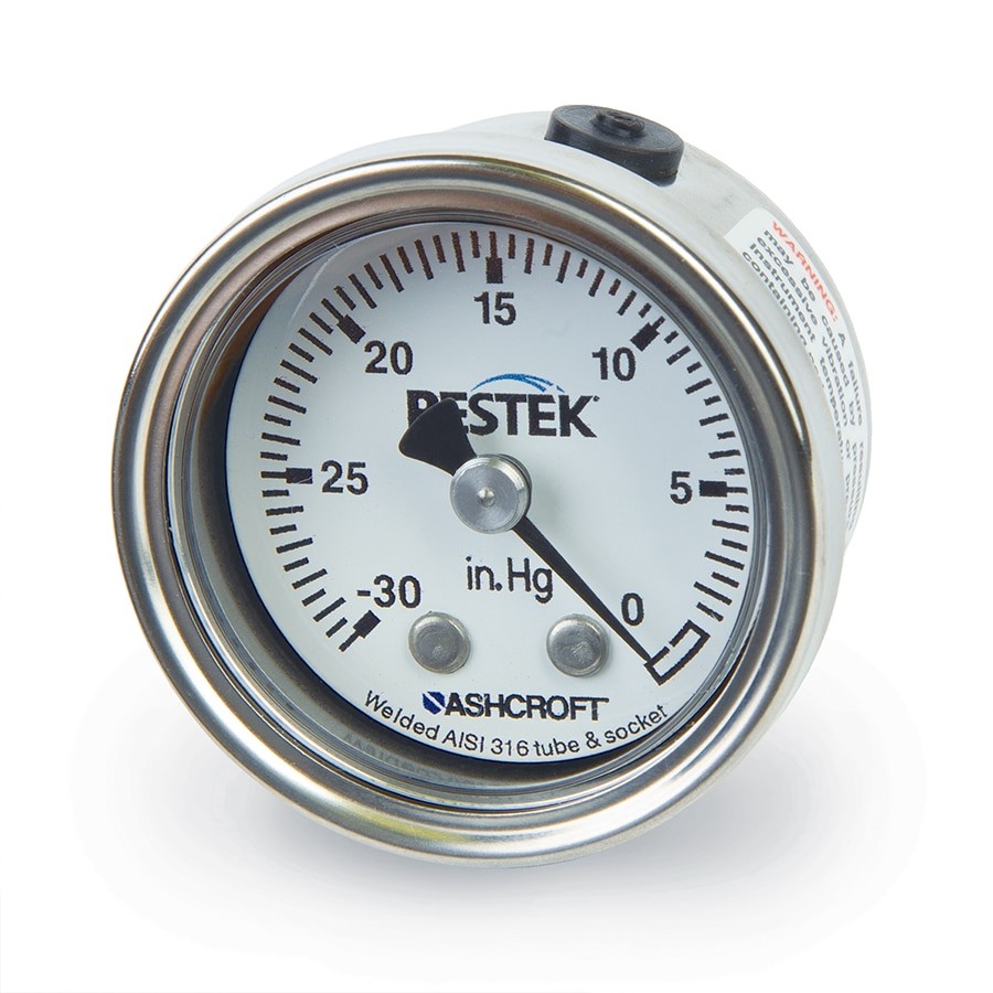 真空表,-30英寸至0英寸Hg,1/8英寸NPT CBM,直径1-1/2英寸,316不锈钢,Lexan Lens |