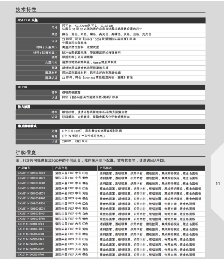 MSA F1XF消防头盔