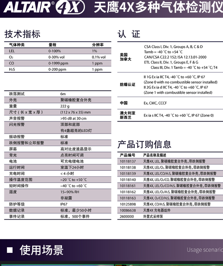天鹰4X Ex-O2-CO-H2S多种气体检测仪