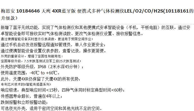 MSA/梅思安天鹰4XR便携式多种气体检测仪4XR和外置泵一套+10M管子