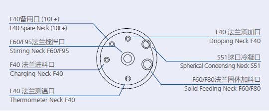 150L 7+1口反应瓶·变频搅拌·双层桨叶·全法兰联接·侧放阀·具循环泄压装置·PTFE加料阀·PTFE放料阀·不锈钢底座