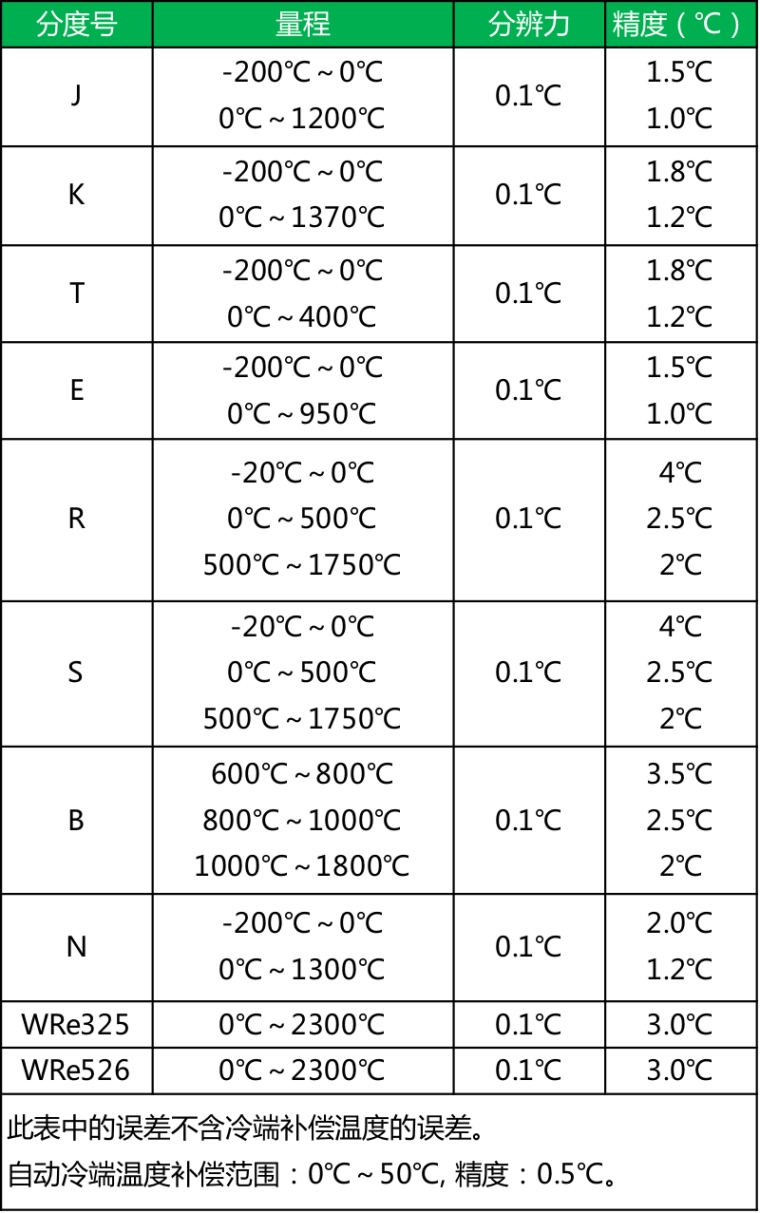 ● 可根据客户需要添加新的热电偶、热电阻种类。