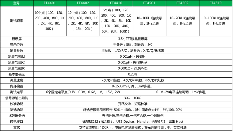 本系列LCR数字电桥是采用自动平衡电桥原理设计的元件参数分析仪,其10Hz~100kHz的测试带宽、频率连续可调、0.2%的基本测量精度以及仪器所提供的档分类功能为绝大多数元器件和材料提供准确、完整的测量与分析,广泛适用于产品研发、元器件入厂检验、产品在线分检等应用场合。