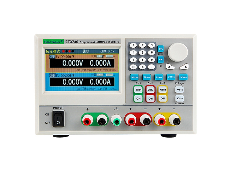 线性直流电源因其输出电压高稳定、低噪声的特点,广泛应用于研发测试和设计验证等场景。ET37系列可编程线性直流电源配备4.3寸TFT真彩屏,显示界面直观简洁、内容丰富,操作简单便捷;具有输出稳定、低噪声、高精度、高分辨率等特点;4种输出模式,输出范围大。