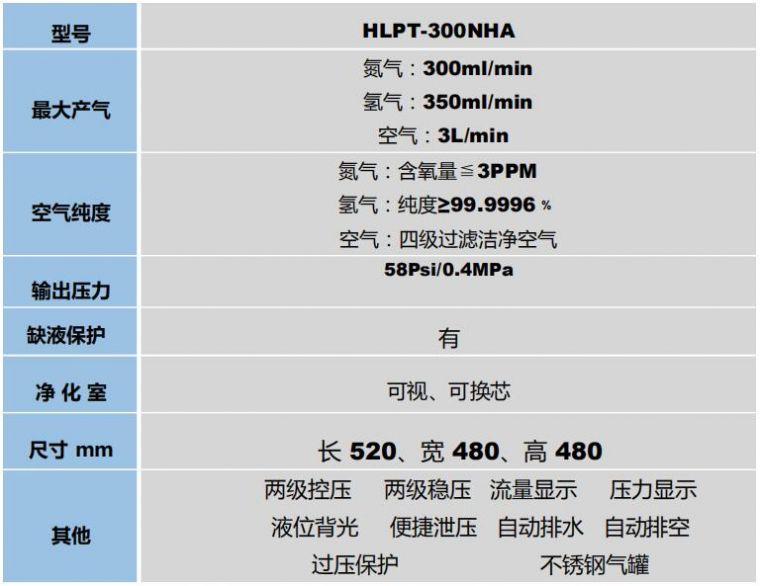 集合氮气发生器、氢气发生器、空气发生器三大主机功能于一体