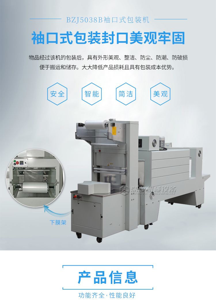 本机广泛应用于饮料、食品、电子、玩具、五金产品,化妆品、药品、书籍、电子等产品,包装后的产品外形美观、整洁、防尘、防潮、防破损、便于搬运和储存、大大降低产品的损耗,且成本低廉。