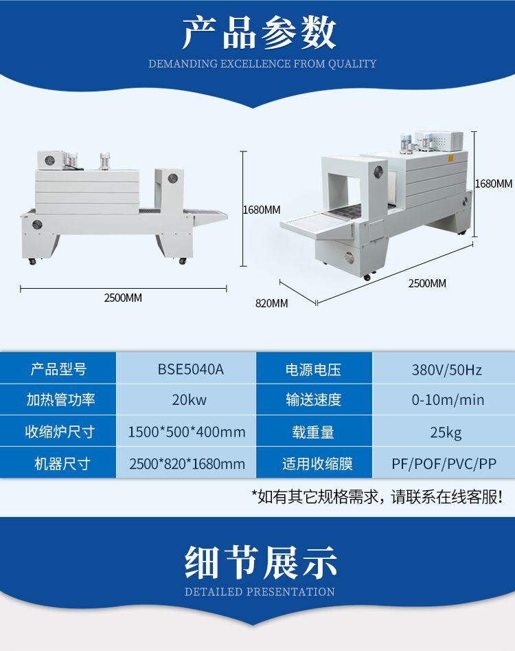 产品别名:BSE-6040A喷气式PE膜热收缩包装机