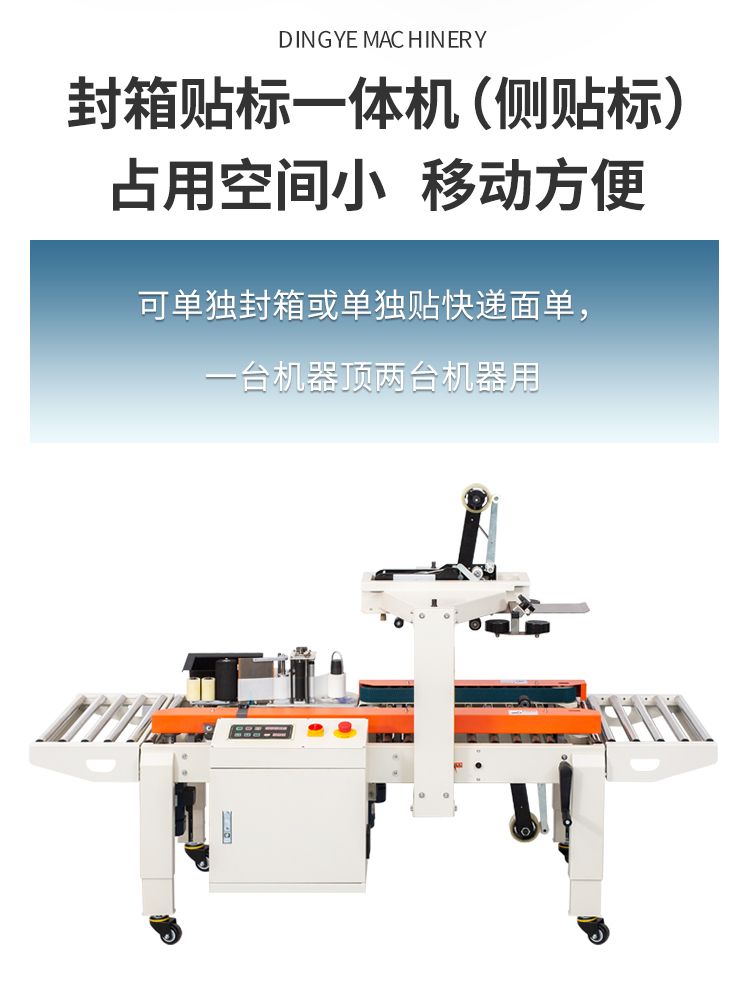 2.可一次完成左,右封箱及侧贴标,广泛使用于电商及物流等行业,快递封箱打包发货,封箱牢固,贴标准,速度快。