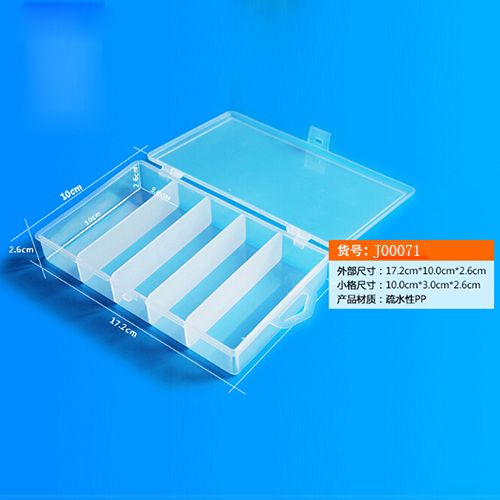 | J00071 | 五格 | 透明 | 连盖 | 长10cm宽3cm高2.6cm | 1个/包,10个/盒 |