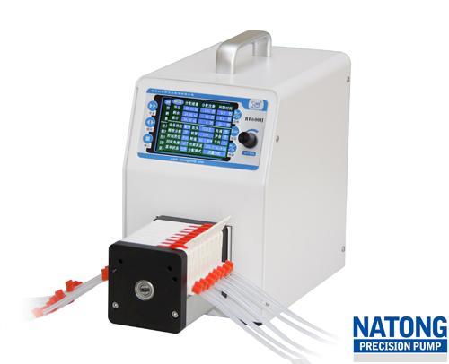 纳通蠕动泵采用脉冲调速,用角度来控制灌装量,保证每次灌装停机后滚轮位置不变,避免了因滚轮每次停的位置不同而产生的误差。使得重复精度有很大的提升。可以控制在0.3%以内。(仅适用于10滚轮或8滚轮泵头)