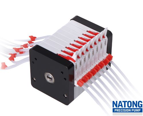 MCX系列泵头用于微小流量高精度多通道液体传输。泵头为高精密8滚轮全滚珠轴承结构,按通道数目分为1-6、8、12通道,并且可以通过泵头串联组合成任意通道数目。