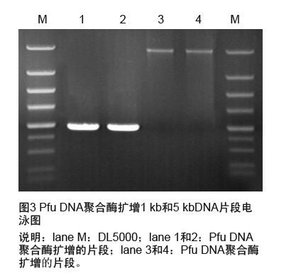 DNA聚合酶的碱基错误率仅为1×10-6。Pfu DNA聚合酶主要用于基因筛选、克隆表达、突变检测、定点突变等对保真性有很高要求的实验。其扩增产物只具有