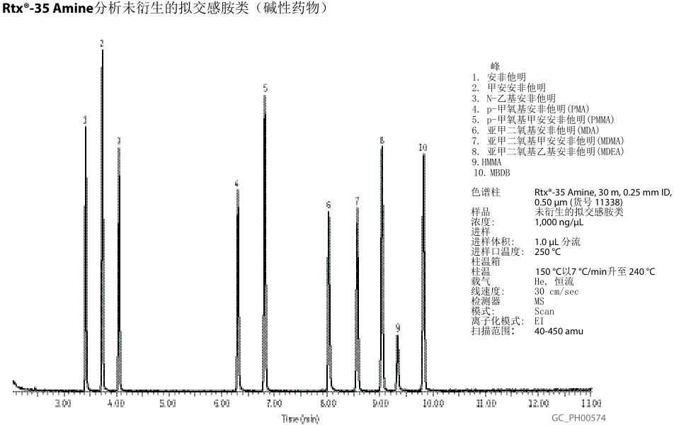 Rtx®-35 Amine分析未衍生的拟交感胺类(碱性药物)