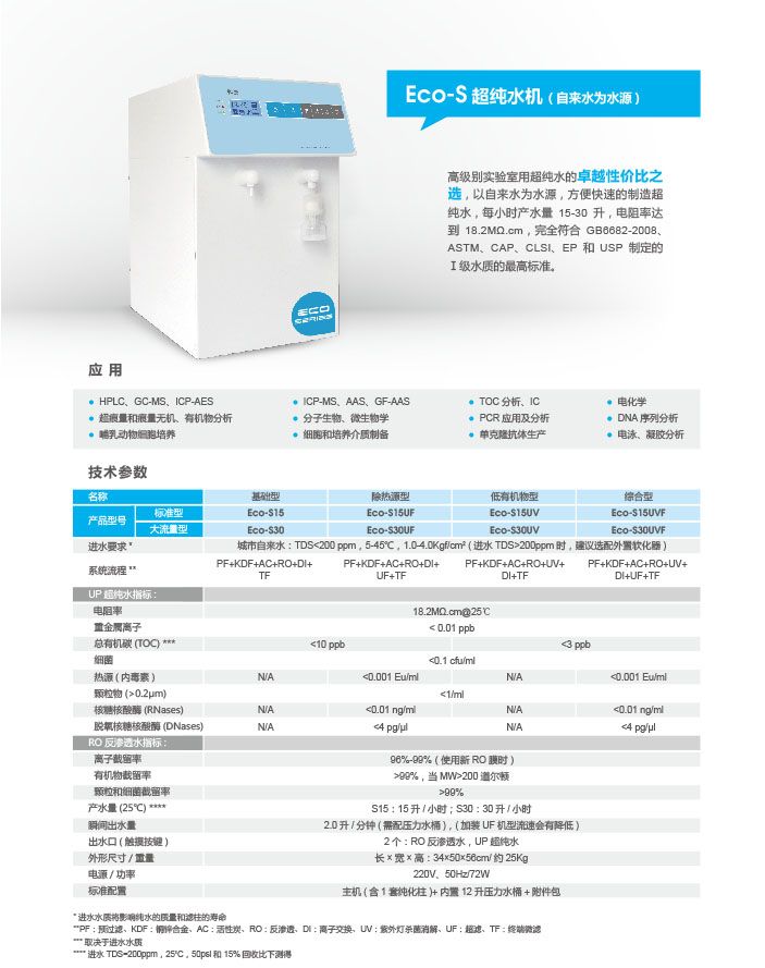 Eco-S超纯水机(自来水为水源)