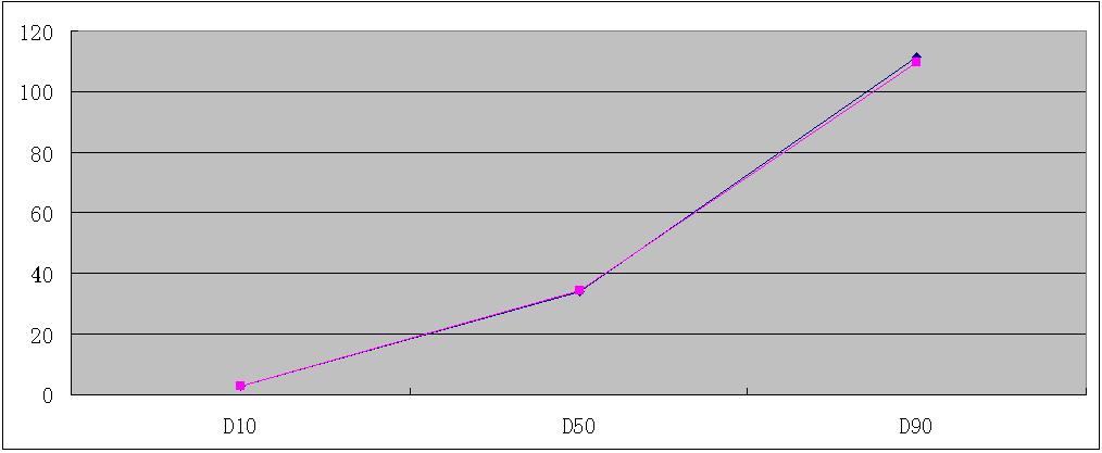 BT-9300S与国外先进激光粒度仪测试结果对比:一致性好。