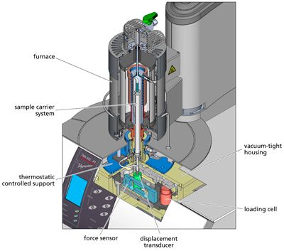 TMA 402 Hyperion® 的系统里,施加在样品上的作用力以电磁方式控制,因此,系统在测试过程(如蠕变模式)中能够快速检测到负荷改变。与那些只能预先设定作用力的仪器不同,TMA 402 Hyperion® 中高灵敏度的传感器(灵敏度 < 0.01mN)通过推杆实时监控作用力,然后再根据需要自动地加以调整。