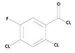 EINECS号:428-390-1分子量:227.45性状:无色或微黄色液体沸点:143-14℃闪点:110℃相对密度:1.568折射率:1.572纯度:≥98.5%水份:≤500ppm杂质:≤0.8%用途:2,4-二氯-5-氟苯甲酰氯是重要的化工原料,广泛用于高分子材料、杀菌剂、除草剂、医药、染料等的制备以及农药杀虫剂、塑料、树脂的鉴定结构式:
