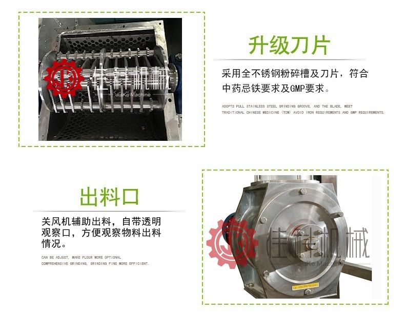 豆蔻万能粉碎机特制了抽风装置,加大了风量,使含油量少的物料能得到更好的粉碎效果。