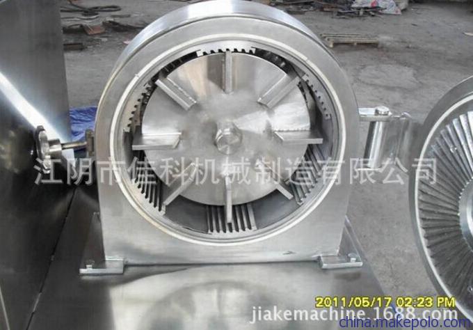 万能粉碎机利用活动齿盘和固定齿盘见的高速相对运动,使被粉碎物经齿冲击,摩擦及物料彼此间冲击等综合作用获得粉碎。江阴万能粉碎机结构简单、坚固、运转平稳、粉碎效果良好,被粉碎物可直接由主机磨腔中排出、粒度大小通过更换不同孔径的网筛获得,另外万能粉碎机为全不锈钢。机壳内壁全部经达到表面平滑,改变了以前机型内壁粗糙、积粉的现象,使药品、食品、化工等生产更符合国家标准,达到GMP的要求。