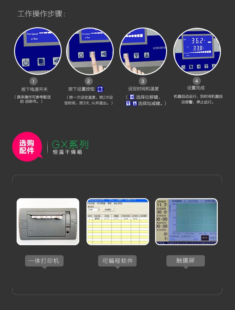 自适应式PID程度控制,精确控制温度,预防温度过冲,保持腔内温度均匀、恒定。
