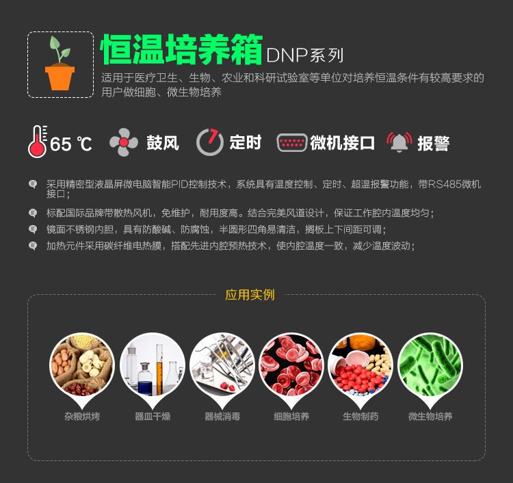 适用于对微生物的培养等行业,是医疗卫生、生物、农业和科研实验的必备设备。