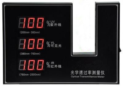 SDR853光学透过率测量仪的测试原理是采用紫外光源,可见光源和红外光源照射被测透明物质,感应器分别探测三种光源的入射光强和透过被测透明物质后的光强,透过光强与入射光强的比值即为透过率,用百分数表示。