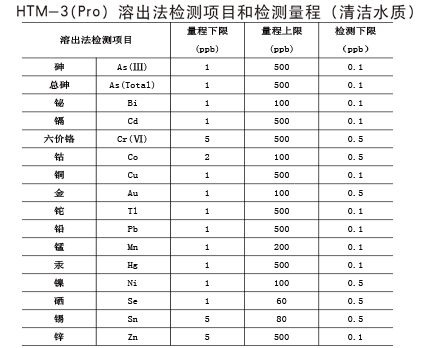 HTM-3便携式重金属分析仪检测灵敏度高,部分项目检测限可以低至0.01ppb,并逐渐取代AAS和ICP等重金属检测仪器,在环境应急检测、自来水检测、食品和药品检测等方面得到广泛应用。美国EPA和欧盟委员会等政府监管机构已经将其列为标准检测方法,如EPA7063和7472等。