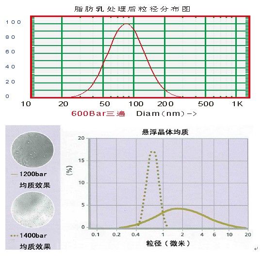 经过这三种效应处理过后,物料粒径可均匀细化到100nm以下,细胞破碎率大于99%以上