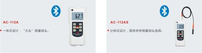 安妙涂层测厚仪(标准型)分为AC-112A(整体式)和AC-112AS(分体式)两个型号;应用广泛、测量准确,几乎可以测量所有的基体,无论是铁基还是非铁基;并且带有USB数据连接和蓝牙传输功能;整体式仪器适合单手操作并且测量更加稳定,因为在测量中,大类型探头的大接触面具有更好的稳定性,使用户得到一个持续且重复性强的精确测量结果;分体式提供多种探头,测量机动性更强。