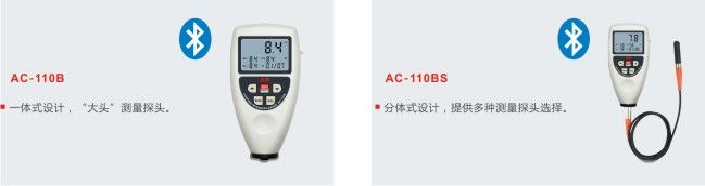 安妙涂层测厚仪(统计型)分为AC-110B(整体式)和AC-110BS(分体式)两个型号;可以储存99组最新的测量数据值;应用最广泛、测量准确,几乎可以测量所有的基体,无论是铁基还是非铁基;并且带有USB数据连接和蓝牙传输功能;整体式仪器适合单手操作并且测量更加稳定,因为在测量中,大类型探头的大接触面具有更好的稳定性,使用户可以得到一个持续且重复性强的测量结果;分体式提供多种探头,测量机动性更强。