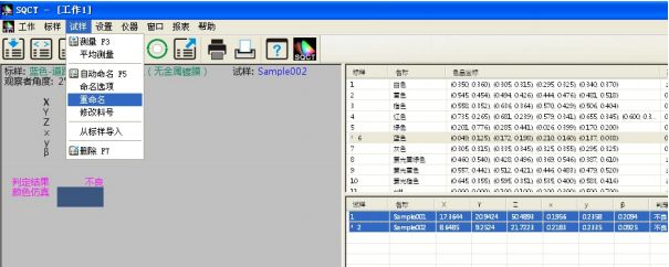 同时可以通过“试样->重命名/删除”对测试试样进行重命名和删除操作。