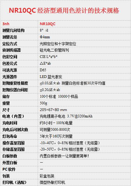 NR10QC是依据CIE(国际照明委员会)的相关标准、国家标准研发生产的精密仪器。该色差计采用全新进口关键元器件,经精心设计,具有精确稳定、操作简单、易学易懂、经济实惠等特点。