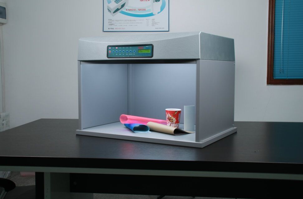 在生产实际中,多数是在光源的照射下工作,而每种光源均带有一定颜色。这就给正确判断原稿或产品颜色带来一定困难,色光下观色,色彩变化一般是相同色变浅,补色变暗,例如:红光下观色,红变浅,黄变橙,绿变暗,青变暗,白变红。绿光下观色,绿变浅,青变浅,黄变绿黄,红变黑,白变绿.黄光下观色,黄变浅,品红变红,青变绿,蓝变黑,白变黄。蓝光下观色,蓝变浅,青变浅,绿变暗,黄变黑,白变蓝.在印刷车间,一般都选择色温较高(3500~4100K),显色系数较好的日光灯作为看样光源,但要注意日光灯略偏蓝紫色。所以工业生产商拥有一款可以提供标准光源的标准光源箱是非常重要的。