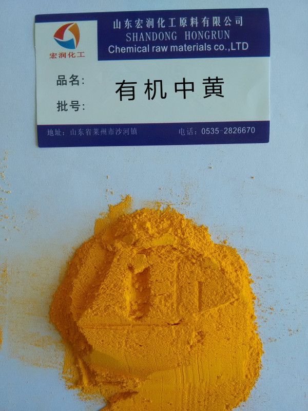 有机中黄(不含重金属)的颜色鲜艳,色泽接近中铬黄,性状相当于耐晒G,着色力强,分散性和耐碱性良好。