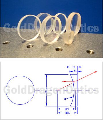K9平凹球面透镜 (尺寸及镀膜可按用户需求定制)单位(mm)