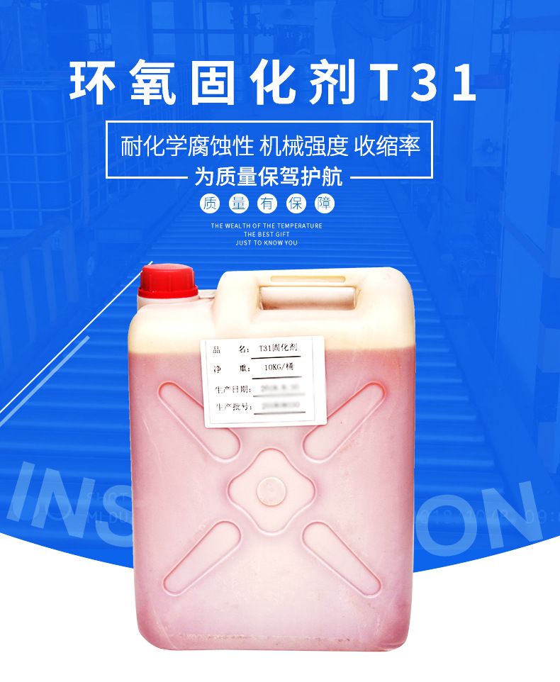 1、T31固化剂与环氧树脂配合,适用于环氧树脂制品、石油、化工、造船、水电、航空、制药、化纤行业的喷涂及防腐,油漆、涂料行业的配制。