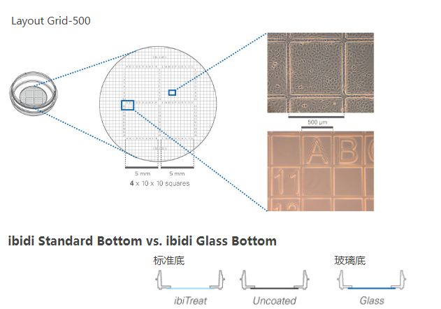 | 81168 | µ-Dish 35 mm,高壁,玻璃底,500微米格子培养皿 | 30 |