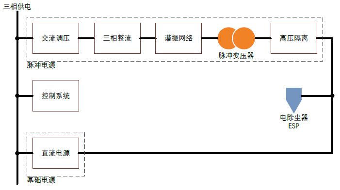 HFPPS系列电除尘器高压脉冲电源由一个直流高压源和一个脉冲源叠加组成,直流高压源采用高频电源设计,具有动态响应速度快、转换效率高等优点。